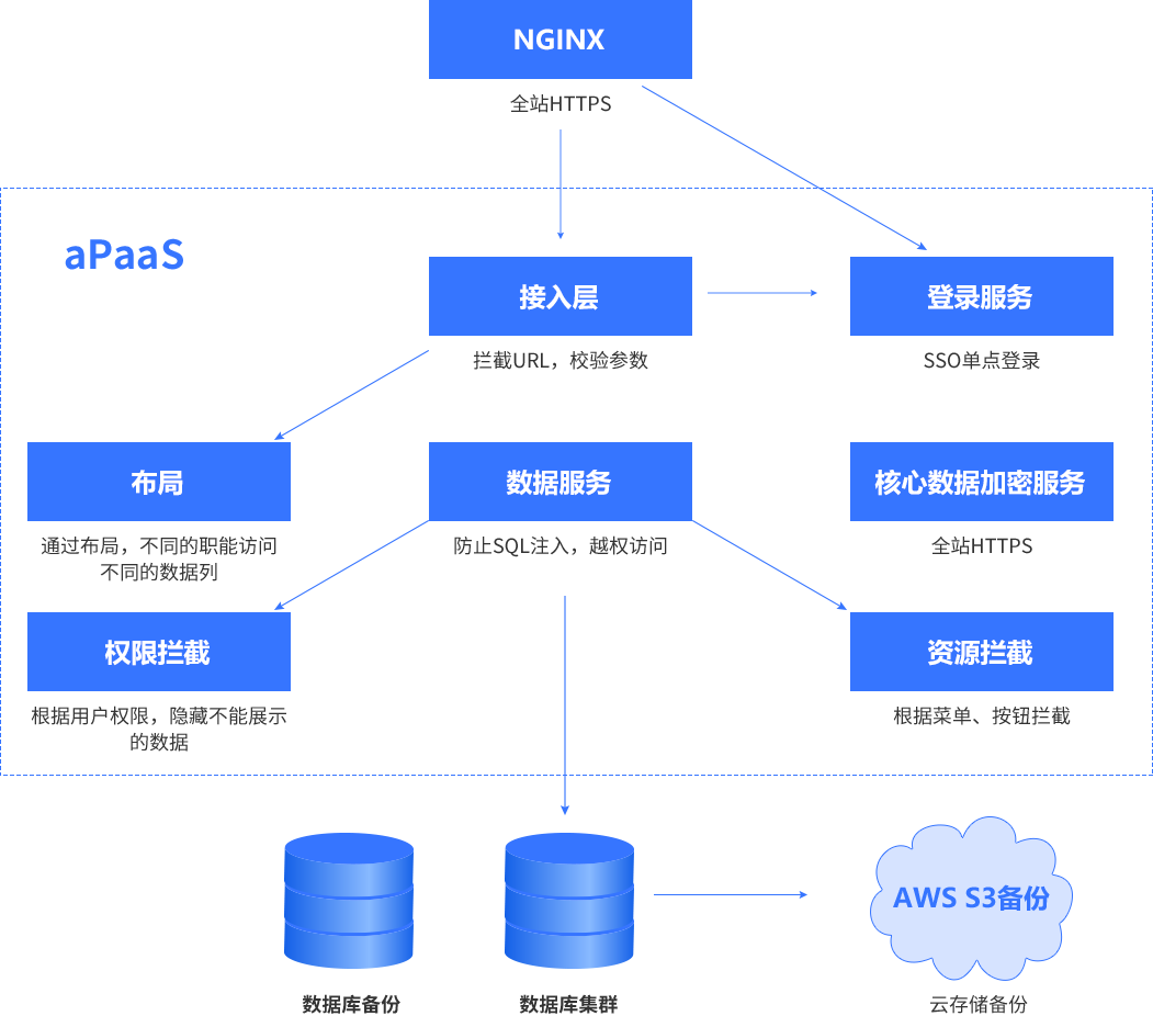 备注:::平台与业务分离,,,开发运维只运维平台,,,,业务专家生成的元数据(表/字段/运行逻辑)+业务数据全部以碎片的方式存储在DB中,,,,技术人员无法解读,,,,只有业务专家授权后才能导出元数据+业务数据