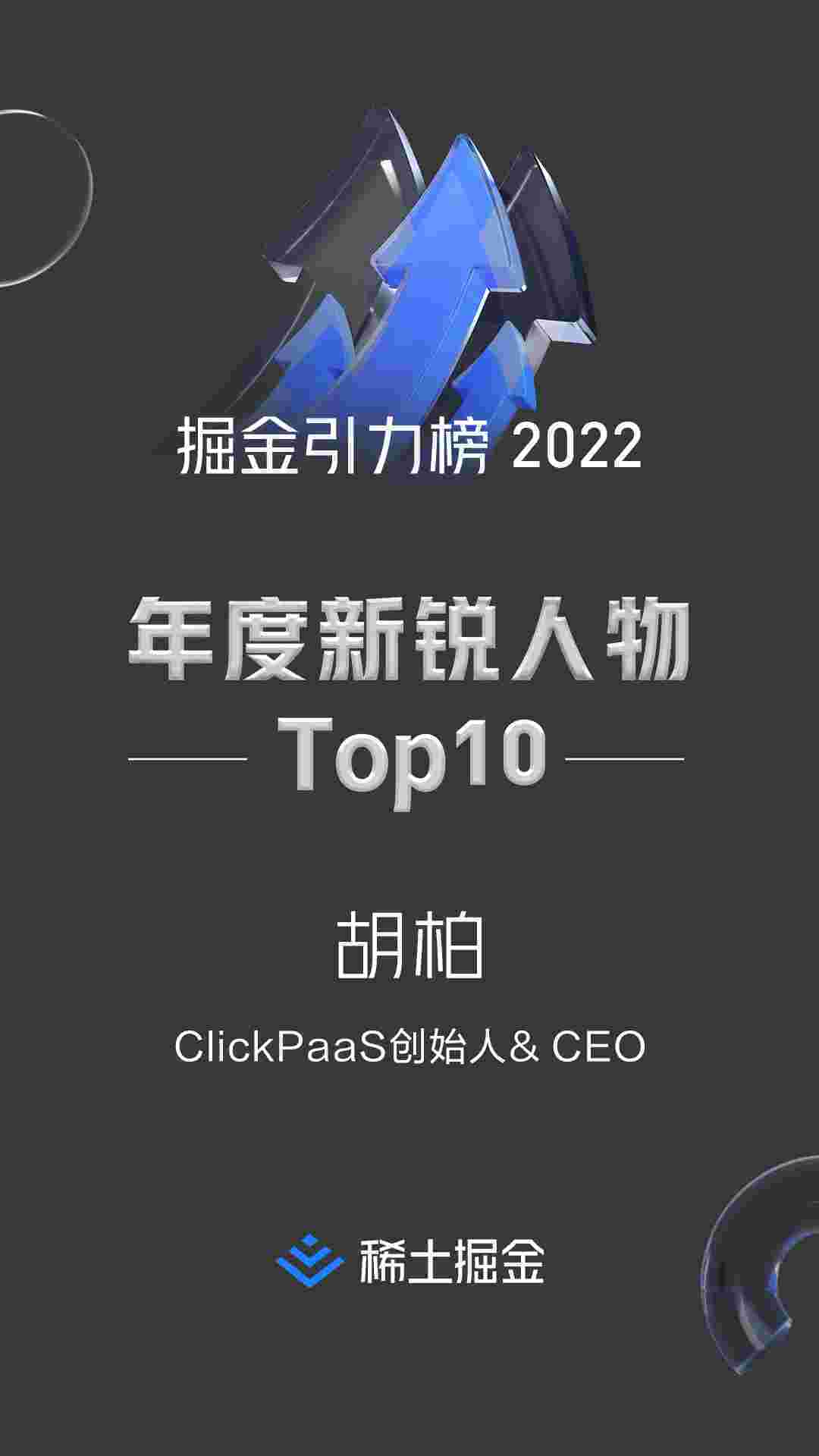 2022年1月6日,,,稀土掘金社区第一届「掘金未来大会」成功举办,,,会上发布了“2022 稀土掘金引力榜 年度新锐人物”榜单,,上海爱湃斯科技有限公司(简称圆梦钱包)创始人及CEO胡柏实力入选年度新锐人物TOP 10。。。