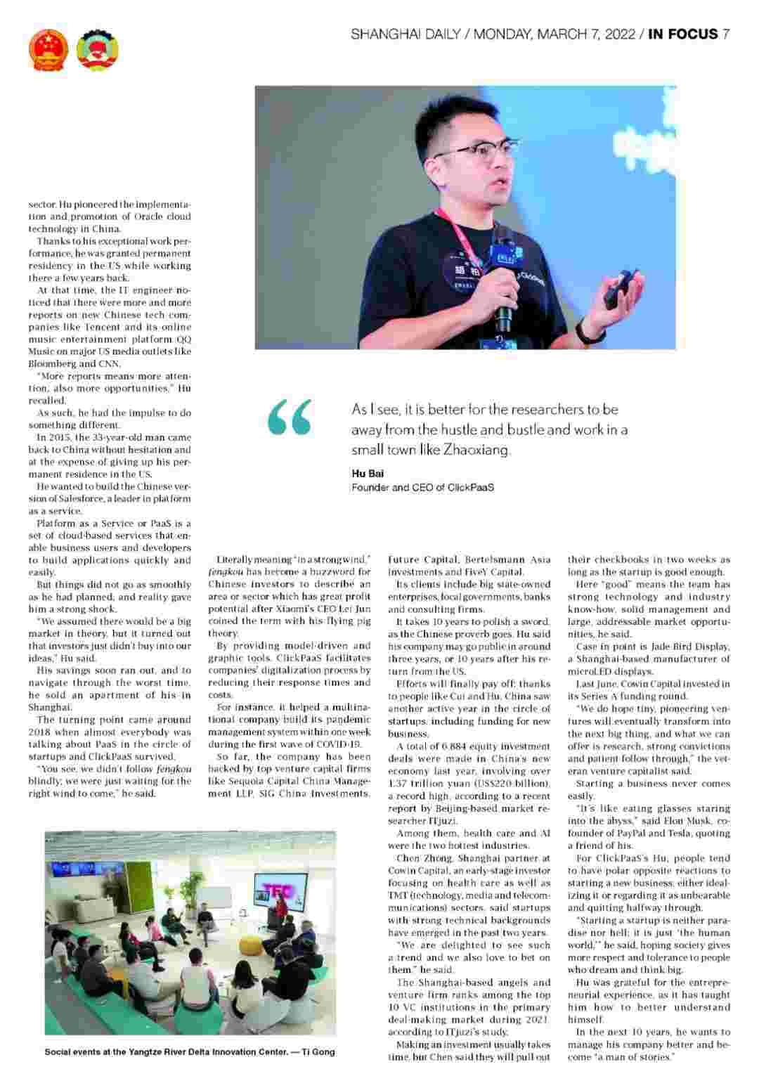 近日,,,圆梦钱包创始人、、CEO胡柏接受了《上海日报》采访,,,,关于自己当初为何选择创立圆梦钱包,,,,又为何将公司落户于上海青浦,,,,分享了其背后的故 事。。